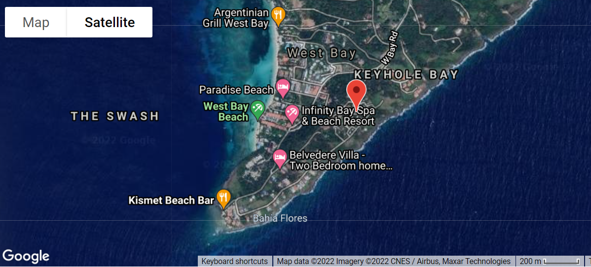 Roatan Breeze is in West Bay - the epicenter of diving and snorkeling in Roatan. The closest access to the ocean when the weather is calm is a 4 minute walk to the local palapa. The primary beach is a 12 min walk or 8 min drive from the house. On the iron shore, Roatan Breeze receives windward breezes from the Caribbean, offering cooling temperatures along with panoramic views of the ocean. The short distance ensures that you still have access to a calm, serene setting with the opportunity to listen to bird calls and the breezes. Restaurants and shopping are in close proximity.